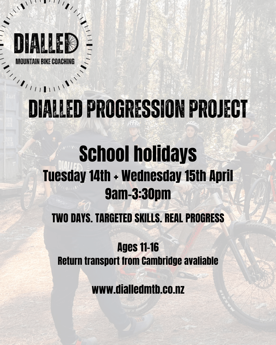 At Dialled MTB Coaching, we’re passionate about helping riders of all ages and abilities get the most out of their time on the bike. Based in the heart of the Waikato, we create a safe, supportive, and fun environment where you can unlock your true potential.